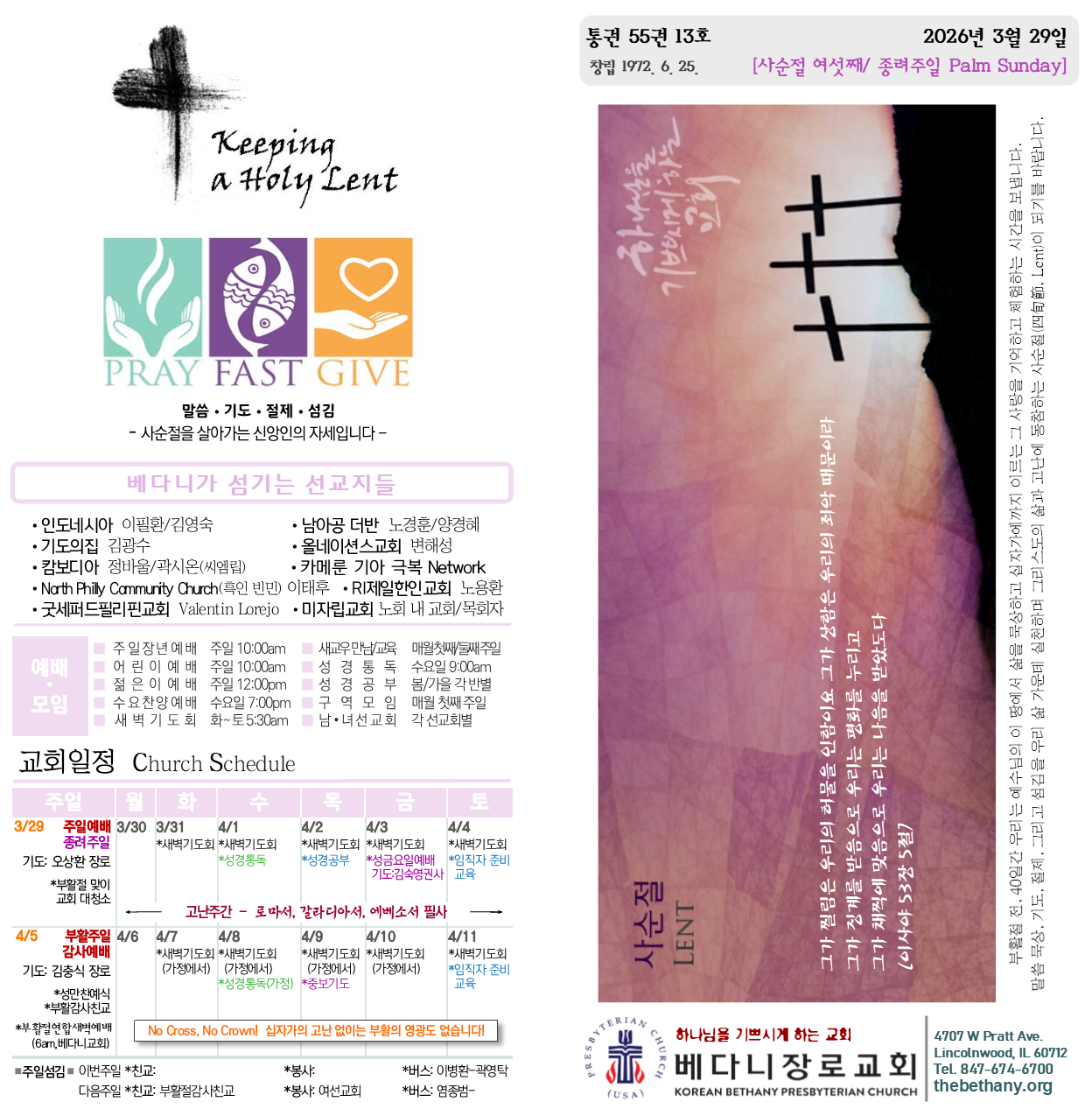 2026년 3월 29일 주보 Korean Bethany Presbyterian ChurchMarch 28, 2026 Facebook0 Twitter LinkedIn0 Reddit Tumblr 0 Likes