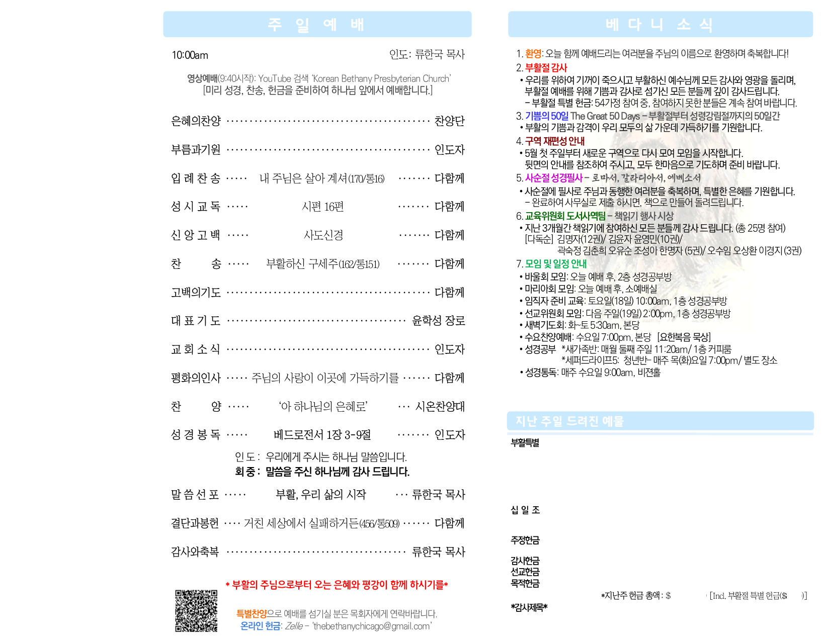 2026년 4월 12일 주보 Korean Bethany Presbyterian ChurchApril 11, 2026 Facebook0 Twitter LinkedIn0 Reddit Tumblr 0 Likes