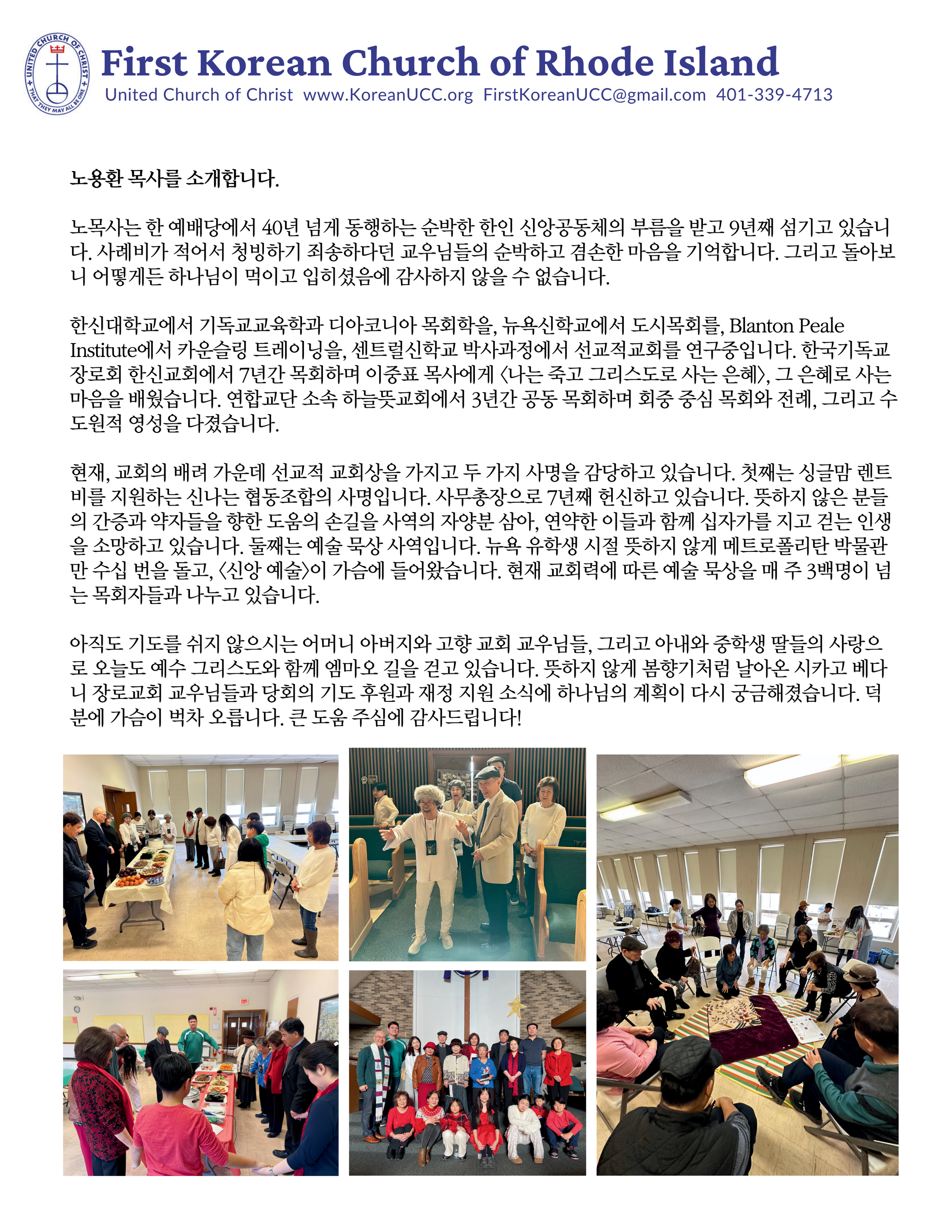 RI제일한인교회의 노용환 목사를 소개합니다