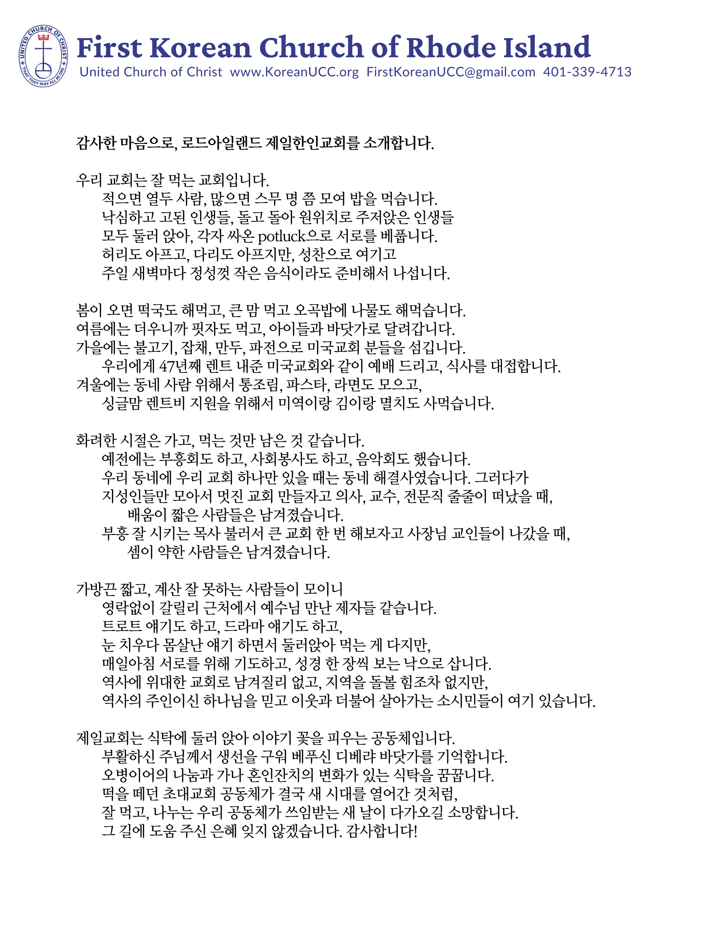 로드 아일랜드 제일 한인교회를 소개합니다