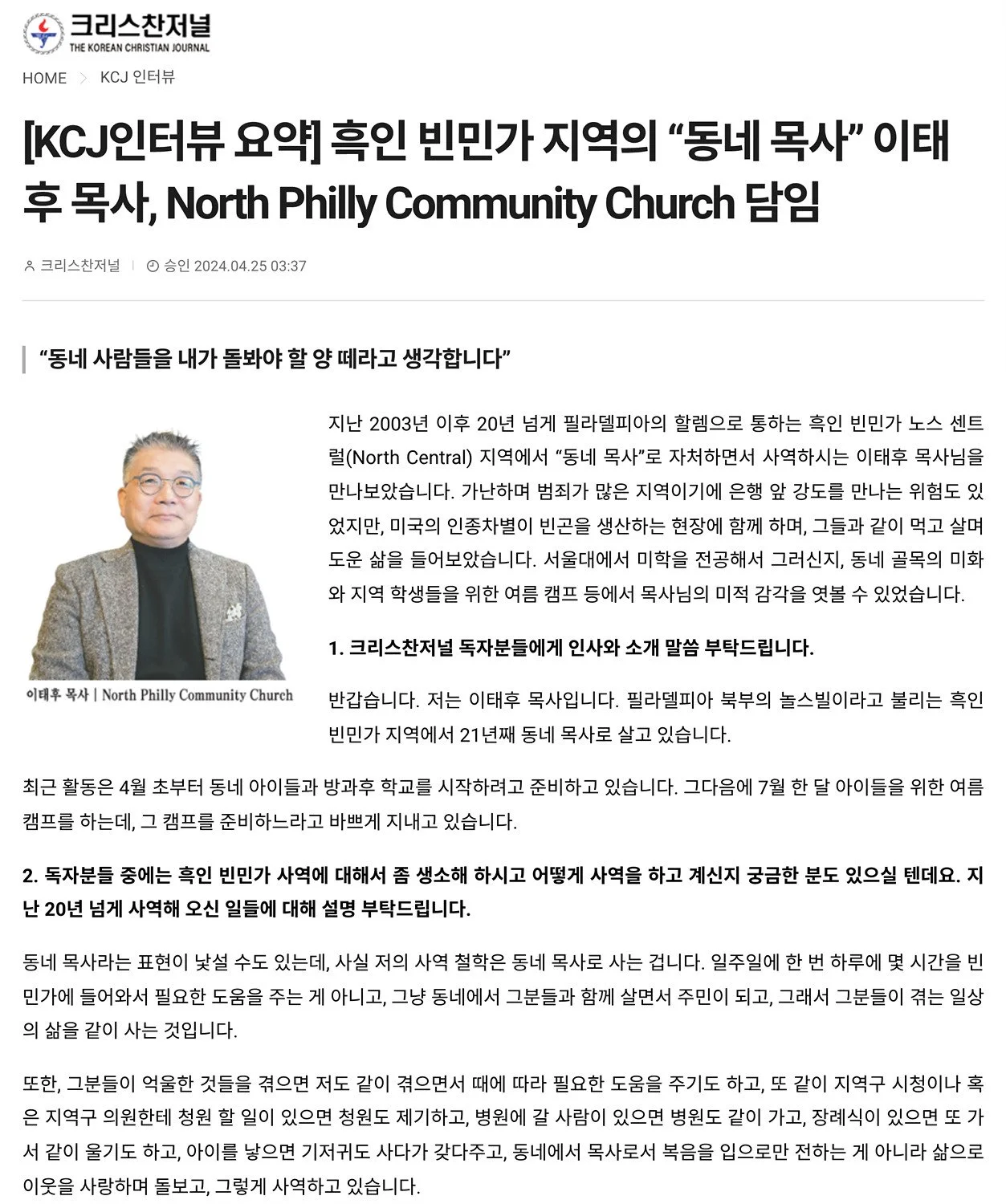 흑인 빈민가 지역의 '동네 목사' 이태후 목사 Korean Bethany Presbyterian ChurchMarch 21, 2026 Facebook0 Twitter LinkedIn0 Reddit Tumblr 0 Likes